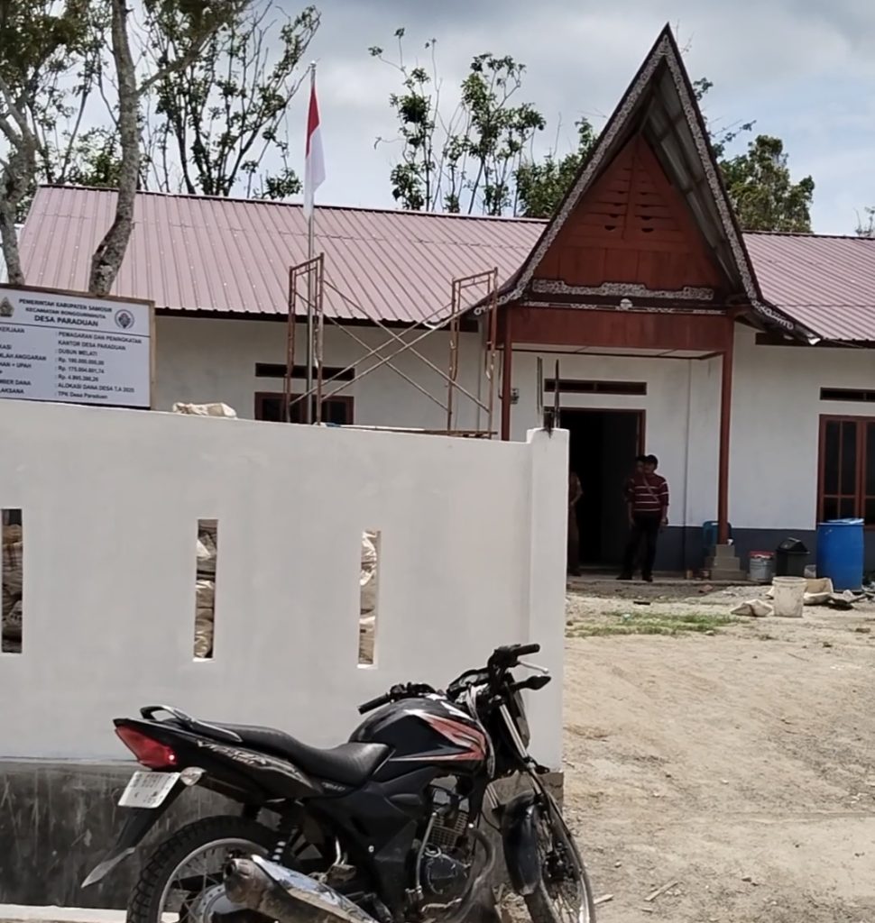 Salah satu proyek utama saat ini adalah rehabilitasi kantor desa. Proyek yang didanai dari Anggaran Dana Desa 2025 sebesar Rp 180 juta itu mencakup renovasi plafon, pemasangan lantai keramik, pengecatan dinding, dan pembangunan pagar permanen berukuran 20 × 30 meter. Darwin menjelaskan bahwa pembangunan ini sejak tahun lalu dan tahun ini dituntaskan agar kantor menjadi milik tetap desa. Selama ini, kata dia, kantor desa berpindah-pindah karena belum memiliki gedung permanen, senin 13/10.