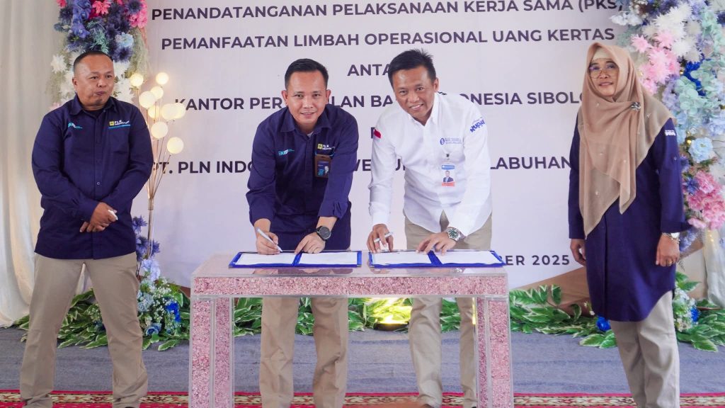 Tapian Nauli, Tapteng,PRESTASIREFORMASI.COM – PLN Indonesia Power Unit Bisnis Pembangkitan (UBP) Labuhan Angin menjalin sinergi berkelanjutan dengan Kantor Perwakilan Bank Indonesia (KPw BI) Sibolga melalui penandatanganan Surat Pelaksanaan Kerjasama Pemanfaatan Limbah Operasional Uang Kertas (LRUK).