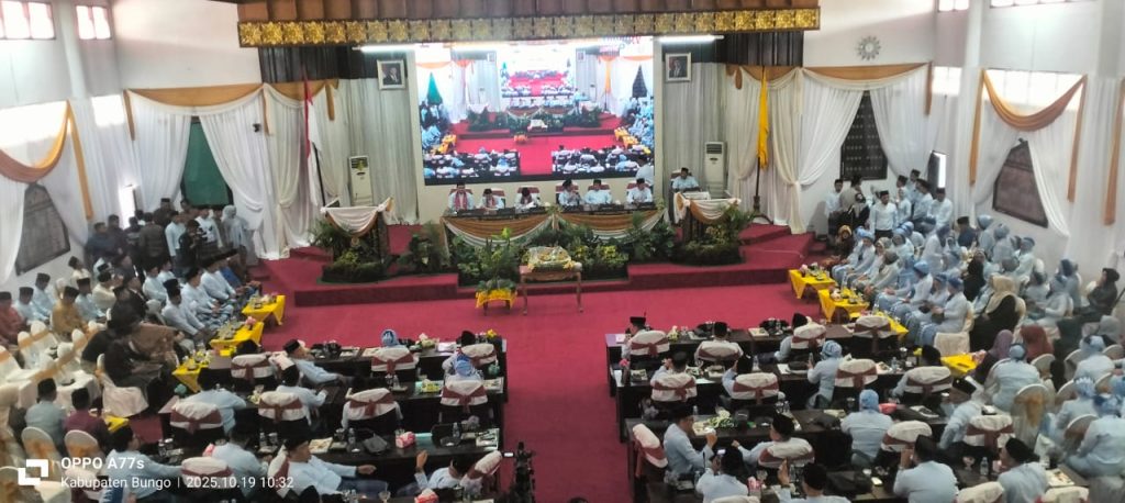 Rapat paripurna dipimpin langsung oleh Ketua DPRD Kabupaten Bungo, didampingi para Wakil Ketua DPRD, serta dihadiri oleh Bupati Bungo H. Dedy Putra, S.H., M.Kn, Wakil Bupati H. H. Safrudin Dwi Apriyanto, Forkopimda, para anggota DPRD, tokoh adat, tokoh masyarakat, dan unsur organisasi wanita serta pemuda.