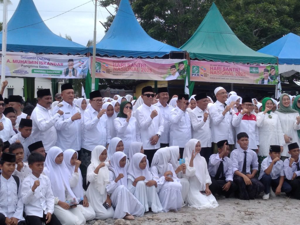 Barus, Tapteng PRESTASIREFORMASI.COM– Apel akbar Hari Santri Nasional (HSN) 2025 digelar di Barus, Kabupaten Tapanuli Tengah, Sumatera Utara,Rabu 22/10-2025. Ketua Umum DPP PKB sekaligus Menteri Koordinator Pemberdayaan Masyarakat Abdul Muhaimin Iskandar (Gus Muhaimin atau Cak Imin) bertindak sebagai Inspektur Upacara apel tersebut. Apel Hari Santri Nasional Dipusatkan di lapangan Tugu Kilometer Nol Peradaban Islam Nusantara di kelurahan Pasar Batu Gerigis Barus.