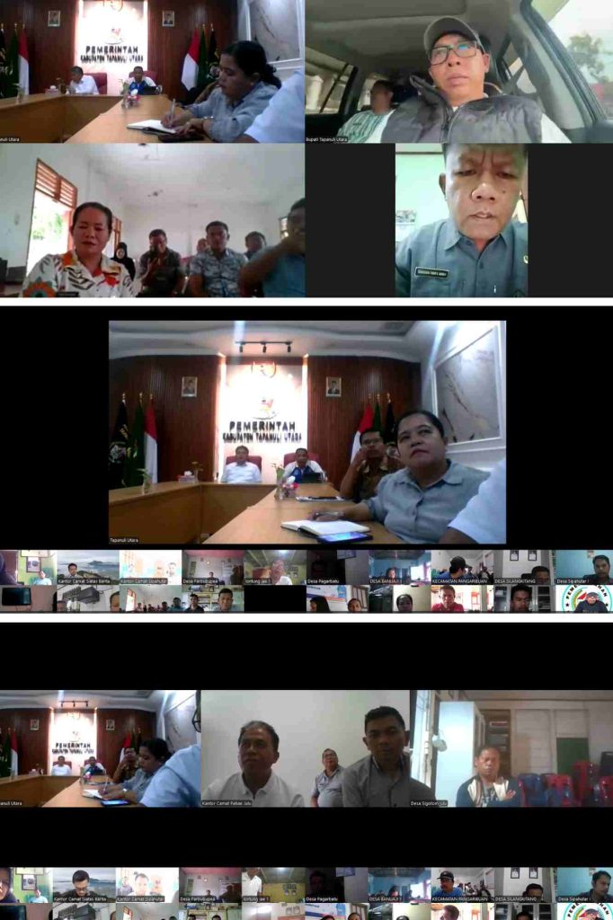 Taput, PRi. Com – Bupati Tapanuli Utara, Dr. Jonius Taripar Parsaoran Hutabarat, S.Si., M.Si., bersama Wakil Bupati Dr. Deni Parlindungan Lumbantoruan, ST, M. Eng memimpin Rapat Koordinasi Virtual yang diikuti 214 peserta dari seluruh kecamatan dan desa se-Kabupaten Tapanuli Utara bertempat di Ruang Rapat Mini Kantor Bupati Tapanuli Utara, Tarutung (Jumat 14 November 2025).