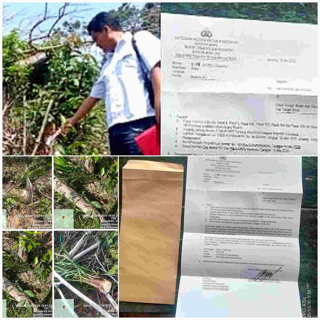 1. 10 Mei 2025 : Inisial D melaporkan perusakan kebun ke Polsek Merlung.