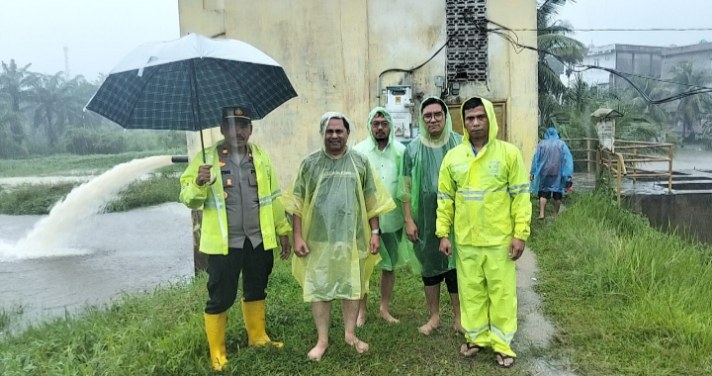 Penanganan banjir dilakukan secara terpadu oleh personel Polsek Tanjung Pura, Dinas PUPR Provinsi Sumatera Utara yang dipimpin Kasi Perencanaan Air, Chandra, S.T., M.T., serta warga sekitar yang turut membantu proses penyedotan dan pemantauan.