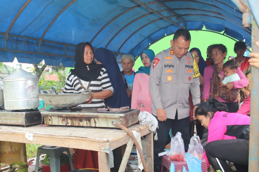Di lokasi dapur umum, Personel Polres Sergai dan Bhayangkari bergotong-royong menyiapkan makanan dengan peralatan masak sederhana di bawah tenda darurat, sambil memastikan setiap warga mendapatkan jatah secara tertib.