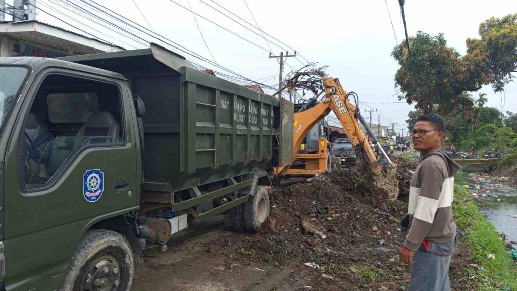 Kegiatan pembongkaran lapak pedagang diatas parit menggunakan alat berat milik Pemkab Deli serdang,sebelum pembongkaran pemilik kios sudah diberikan peringatan melalui surat untuk pemilik pedagang agar dalam waktu yang sudah ditentukan agar tidak ada lagi lapak lapak pedagang diatas parit.