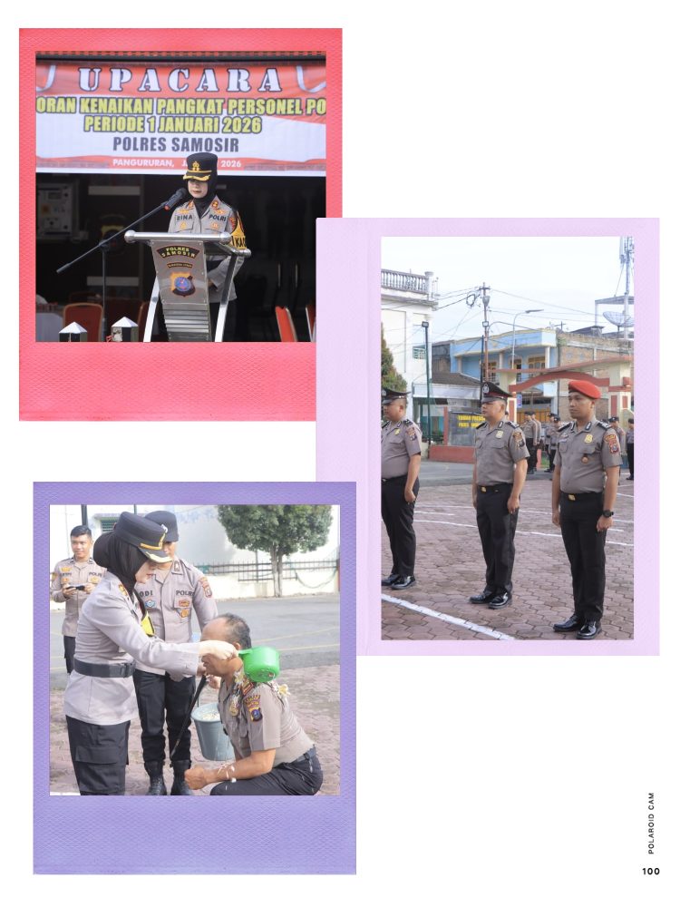 Upacara Korps Raport ditutup dengan tradisi penyiraman bunga dan air sebagai simbol rasa syukur dan penyegaran semangat, yang dipimpin Kapolres bersama para pejabat utama Polres Samosir. Seluruh rangkaian kegiatan berlangsung aman dan tertib.