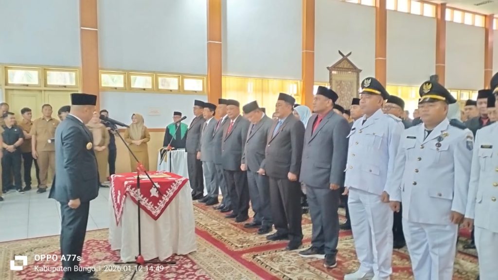Bungo, PRESTASIREFORMASI.Com – Pemerintah Kabupaten Bungo melaksanakan pelantikan dan pengambilan sumpah/janji jabatan bagi Pejabat Pimpinan Tinggi Pratama, Pejabat Administrator, dan Pejabat Pengawas di lingkungan Pemerintah Kabupaten Bungo, Senin (12/01/2026). Kegiatan tersebut berlangsung di Ruang Pola Kantor Bupati Bungo.