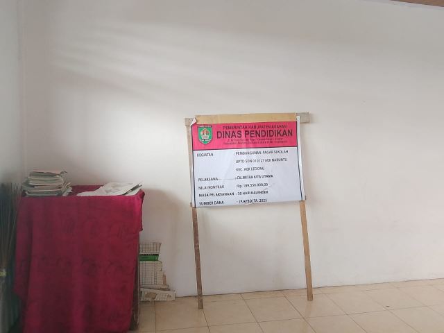 Pada plang proyek yang disandarkan dalam ruangan sekolah itu disebutkan :