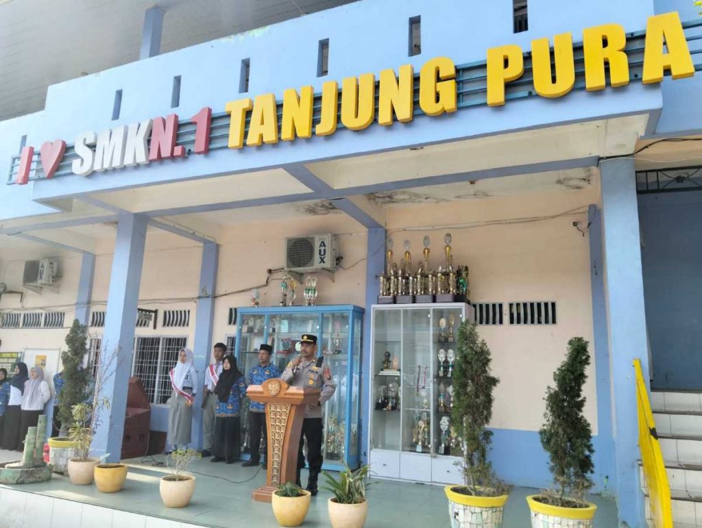 Dalam rangka menanamkan kesadaran hukum serta membangun karakter disiplin sejak dini kepada generasi muda, Polsek Tanjung Pura melaksanakan kegiatan sebagai pembina upacara bendera di SMK Negeri 1 Tanjung Pura, Senin (19/01/2026).