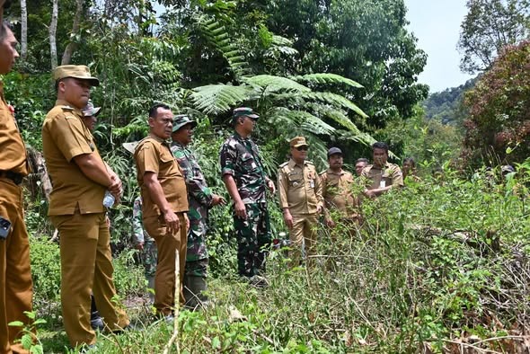 Humbahas, PRi.Com – Bupati Humbang Hasundutan, Dr. Oloan Paniaran Nababan, SH, MH bersama Dandim 0210/TU Letkol Kav Ronald Tampubolon, SH, M.Han melaksanakan peninjauan rencana pembukaan jalan dalam program TNI Manunggal Membangun Desa (TMMD) di wilayah Sijarango menuju Pusuk II Simaninggir.