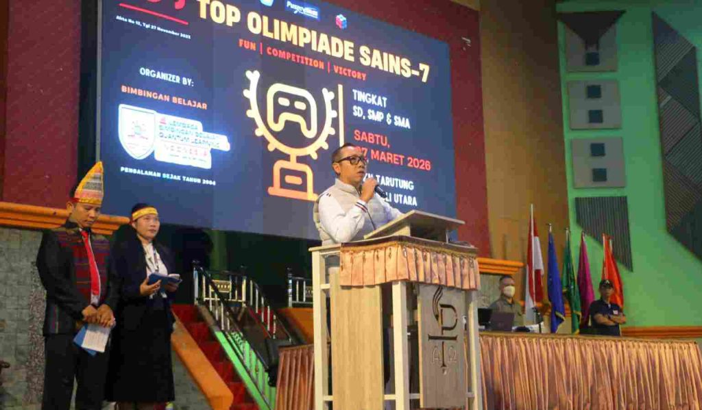 Taput, PRi. Com – Bupati Tapanuli Utara Dr. Jonius Taripar Parsaoran Hutabarat, S.Si., M.Si. secara resmi membuka kegiatan TOP Olimpiade Sains VII tingkat SD, SMP dan SMA yang diselenggarakan oleh Lembaga Bimbingan Belajar Quantum Learning Indonesia bertempat di Auditorium IAKN Tarutung, Sabtu (7/3/2026). Kegiatan ini diikuti oleh 3.211 peserta dari berbagai daerah di kawasan Tapanuli Raya.
