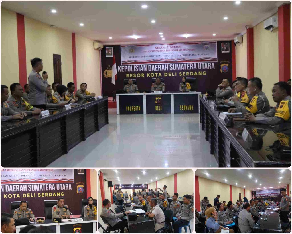 Deli Serdang PRi.Com – Kapolresta Deli Serdang Kombes Pol Hendria Lesmana, SIK, M. Si, melalui Waka Polresta Deli Serdang AKBP Juliani Prihartini, SIK, MH, menyambut kunjungan kerja (Kunker) Tim Asistensi dan Supervisi Mabes Polri di aula Sat Lantas Polresta Deli Serdang, Sabtu (14/3/26).