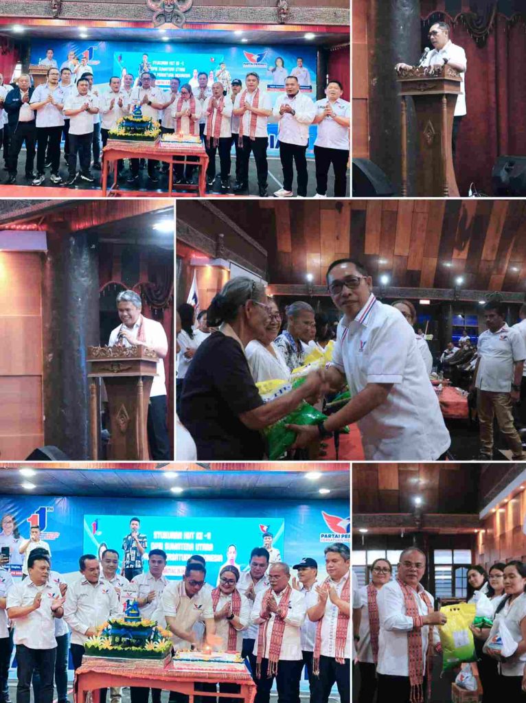 Taput PRi. Com – Bupati Tapanuli Utara sekaligus Ketua DPW Perindo Sumut Dr. Jonius Taripar Parsaoran Hutabarat S. Si, M. Si bersama Wakil Bupati Dr. Deni Parlindungan Lumbantoruan, M. Eng menghadiri Syukuran HUT Perindo ke-11 se-Sumut, bertempat di Gedung Kesenian Sopo Partungkoan, Tarutung (Minggu, 26 Oktober 2025).