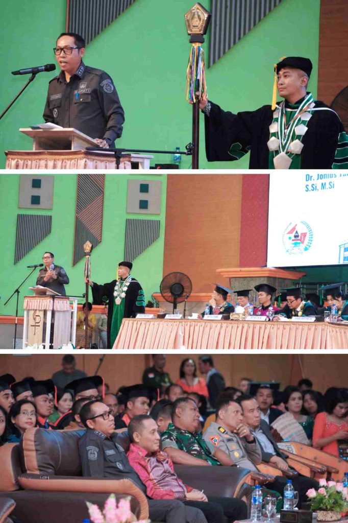 Taput, PRi. Com – Bupati Tapanuli Utara, Dr. Jonius Taripar Hutabarat, S.Si., M.Si, bersama Wakil Bupati Dr. Deni Lumbantoruan, M.Eng menghadiri secara langsung prosesi Wisuda XI Institut Agama Kristen Negeri (IAKN) Tarutung yang digelar di Auditorium Kampus II Sipoholon (Jumat/7 Nopember 2025)