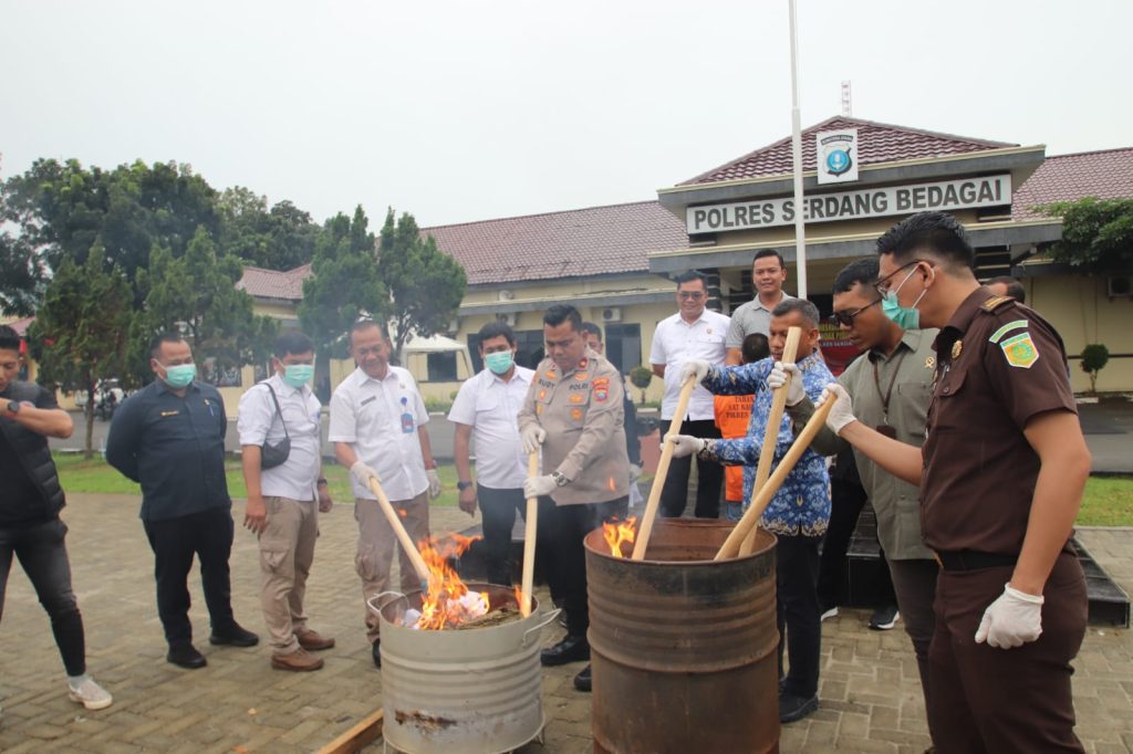 Sergai ,PRI ,Com –Polres Serdang Bedagai gelar acara pemusnahan barang bukti narkotika jenis ganja seberat 23.567 gram dalam konferensi pers yang dipimpin Wakapolres Sergai Kompol Rudy Candra, SH, MH di Depan Lobby Polres Serdang Bedagai, Rabu (17/12/2025).