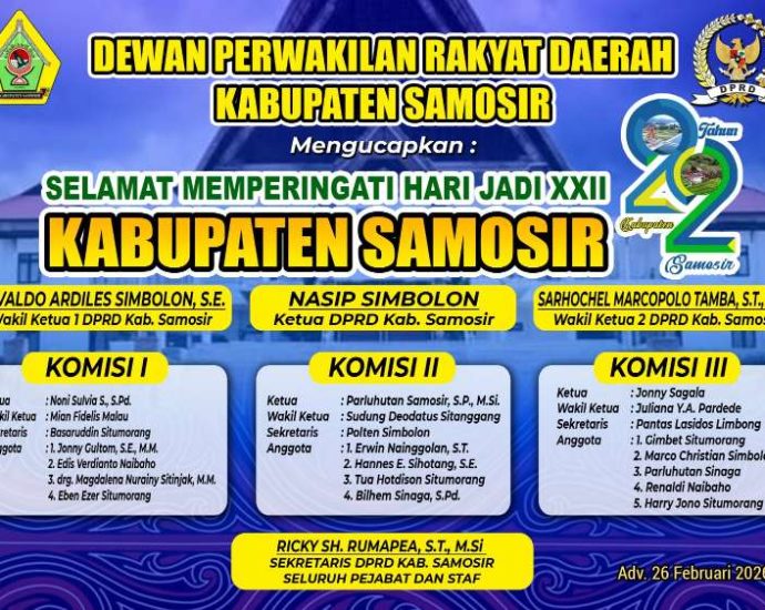 Hari Jadi ke-22 Samosir: Antara Kebanggaan, Tanggung Jawab, dan Konsistensi Menjaga “Rumah Bersama” 2026-03-01