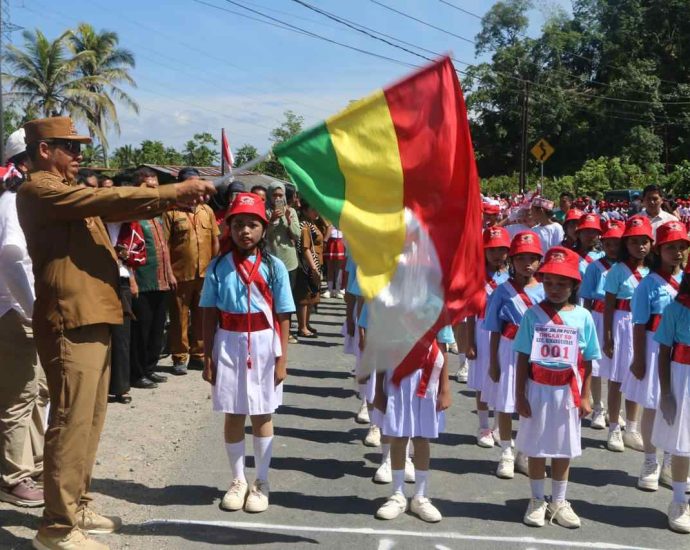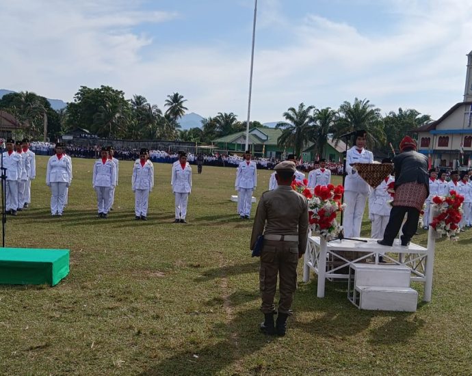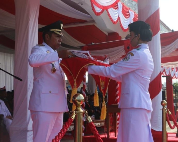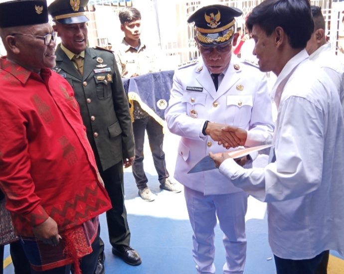 Bupati Taput Pimpin Gerakan Pembagian Bendera Merah Putih di Tarutung dan Pesankan Cinta NKRI 2025-08-06